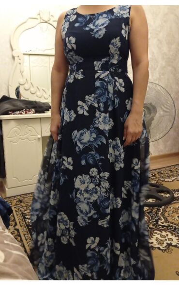 1) Tünd göy üzərində açıq mavi çiçək naxışlı don