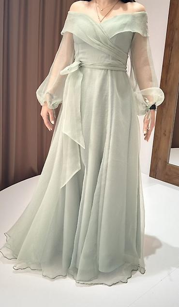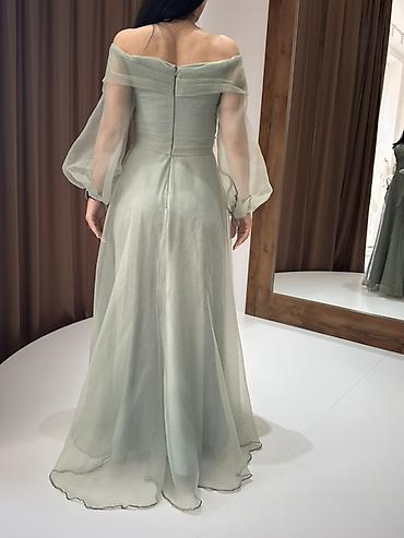 2) Açıq yaşılı, off-shoulder şifon maxi don
