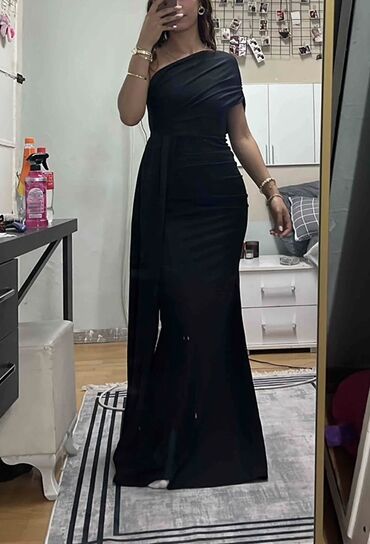 M razmer Qara rəngli gecə/libas - Model: birqollu, assimetrik çiyin