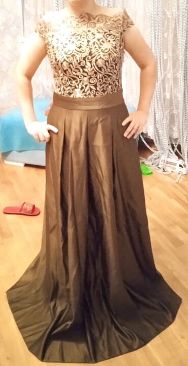 Qəhvəyi uzun ziyafət donu 38/40 M/L razmer - Rəng: tünd qəhvəyi - Model: bədənə oturan, uzun (maksi)