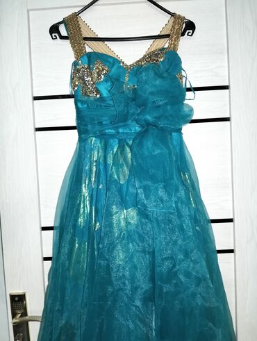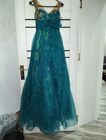 Açıq Göy rəngli zərif ziyafət/gecə donu. 300 azna Elatusda tikilib, 1 dəfə geyinilib. - Model: Uzun, A-kəsim ətəkli, dairəvi yaxalı - Material: Şifon və tül əsaslı, üstü bütövlükdə atlas effektli ...