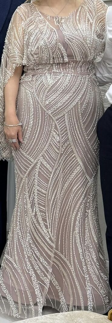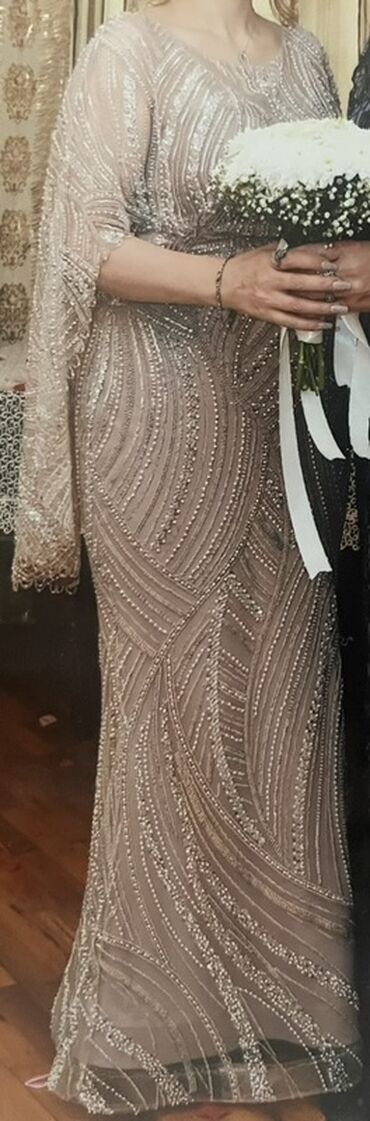 - Parça: şəffaf tül üzərində sıx payet və muncuq işləməli naxışlar; dalğavari xəttlər libasa parıltı və həcim verir