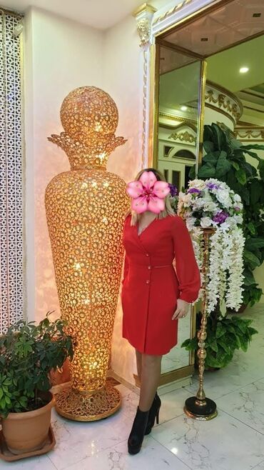 Şəffaf torlu parçadan və polka nöqtəli naxışla hazırlanmış qadın ziyafət donu. Geniş, zəng formalı qolları ilə qəşəng bir görünüş təmin edir. Don uzun formadadır və zərif tədbirlər üçün uyğundur.