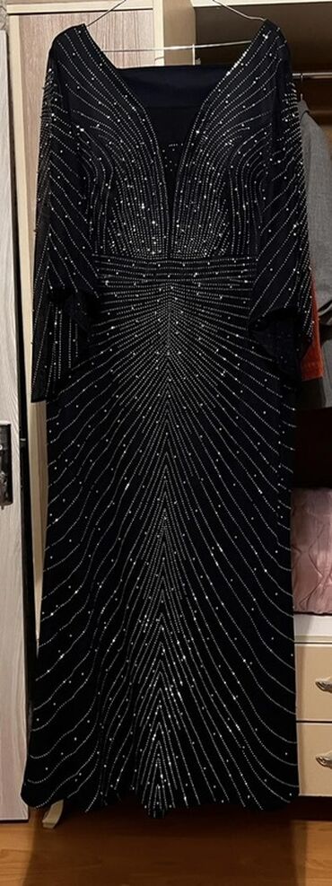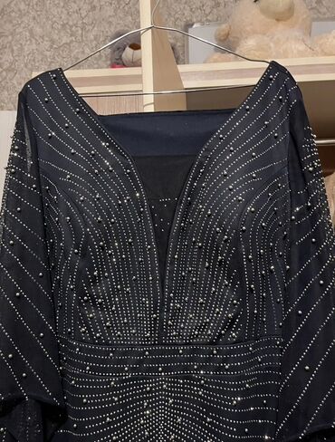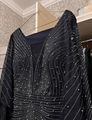 Bu ziyafət donu dərin V yaxalıq və uzun qanadvari qollara malikdir. Qara rəngdə olan donun üzərində gümüşü rəngli muncuq bəzəkləri var, bu da ona zərif görünüş verir. Muncuqlar donun hər yerinə səpələnərək parıltılı bir effekt yaradır. Bu don xüsusi tədbirlər və ziyafətlər üçün uyğundur. 6xl~52raer