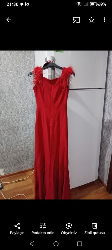 Qırmızı ziyafət geyimi Türkiyədən gətirilib.Heç vaxt geyinilməyib 180 manata alınıb 100 manata satilir. - Parlaq qırmızı rəngdə uzun libas - Kəsimi bədənə oturan, axıcı ətək hissəsi - Kənarları bə...