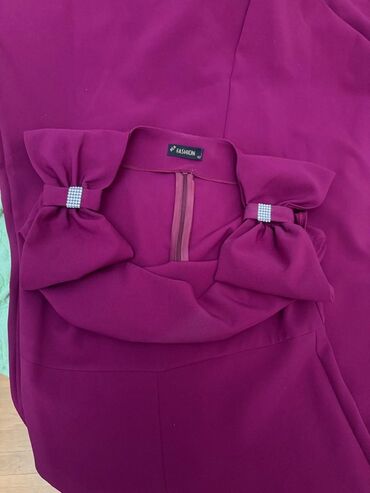 Məhsul: Qadın paltarı - Rəng: Alça-bənövşəyi (magenta tonu) - Model: Asimmetrik ətəkli, peplum kəsimli - Yaxa: Dairəvi (scoop neck) - Qol: Qısa qol, kəsikli və qatlı dekorativ elementlərlə - Uzunl...