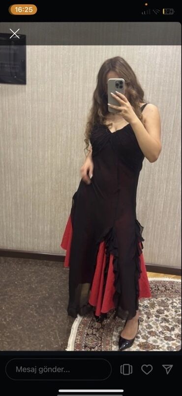EndirimsizQara-qırmızı rəngli zərif gecə/ rəqs paltarı