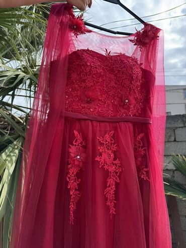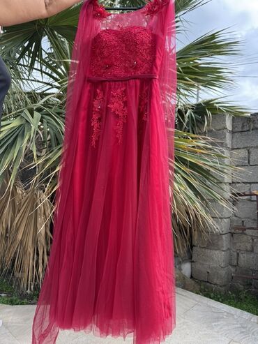 Zərif gecə/libas – qırmızı rəngdə uzun tül don