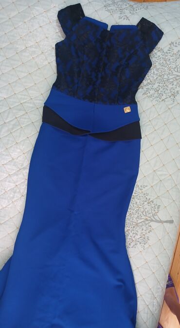 2) Kobalt mavisi–qara rəng kombinasiyalı, dar kəsimli uzun don