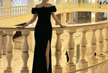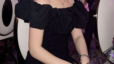 Zərif qara axşam/libas - Model: off-shoulder (çiyinlər açıq), büst hissədə yüngül drapirovka S-M razmerlerine gedir - Siluet: bədənə oturan, aşağıya doğru zərif şəkildə enən uzun ətək - Detallar:...
