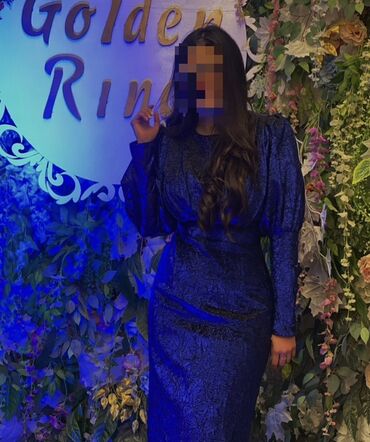 - Model 1: Tünd mavi rəngdə, parıltılı teksturaya sahib midi uzunluqda ziyafət donu. Puff (həcmli) çiyin detalları, uzun qollar və bədənə oturan kəsim ilə zərif siluet yaradır. Parlaq naxışvari faktura işıq altında xüsusi effekt verir. Arxa hissə hamar, bel xəttini vurğulayan konstruksiya. 45 azn