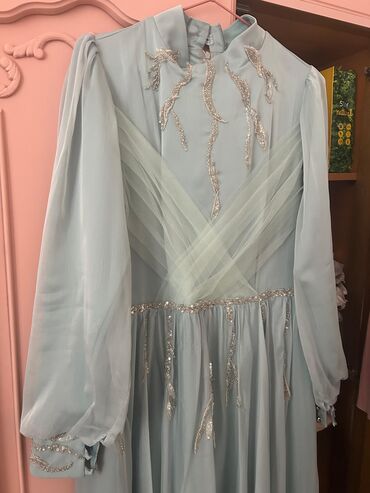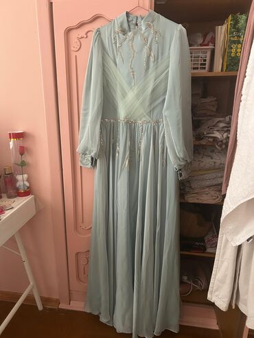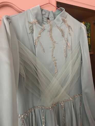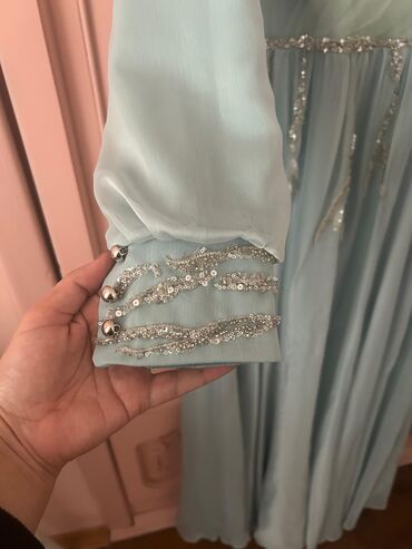 - Məhsul: Axşam/ziyafət geyimi - Model: Tek çiyinli, A-kəsim uzun paltar - Rəng: Tünd kral mavisi - Parça: Yumşaq, axıcı fakturalı əsas parça (qatlama saxlayan), üzərində zəngin aplikasiyalar - Diz...