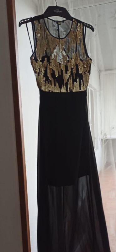 - Üst hissə: şəffaf tor parça üzərində qızılı payetlərlə bəzədilmiş, qolsuz, dairəvi yaxalı