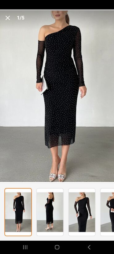 Qara midi ziyafət donu – birqollu, asimmetrik kəsim