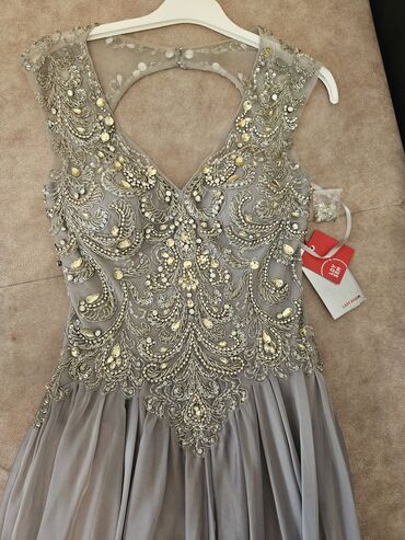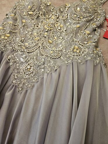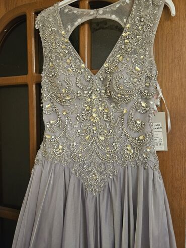 EndirimsizYeni Lady Sharmdan. Gümüşü-boz rəngdə zərif axşam/gecə libası. Üzərindəki etiketde əsl qiyməti var ancaq həmin qiymətdən iki defe aşağı qiymete 250ye satiram.