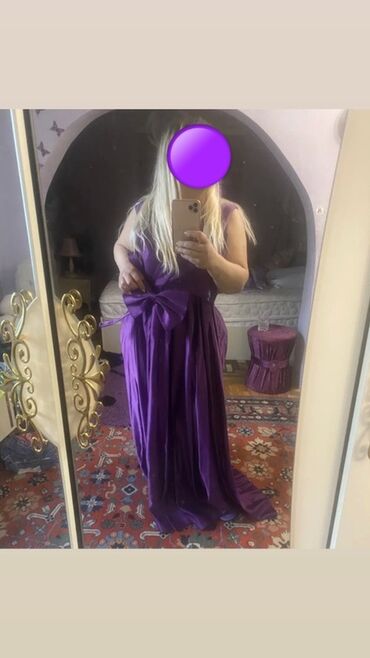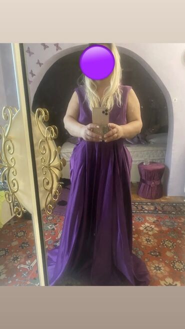 Bənövşəyi rəngdə ziyafət geyimi cox az geyinilib - Model: Uzun, düz