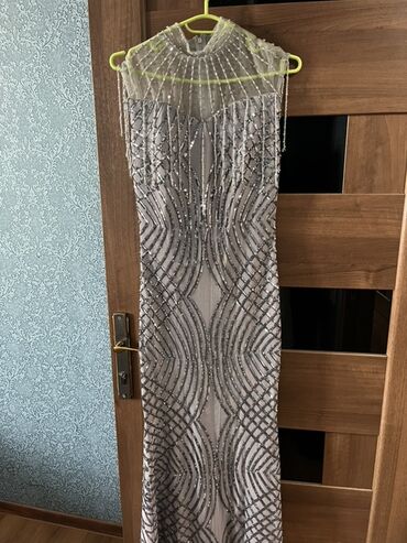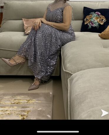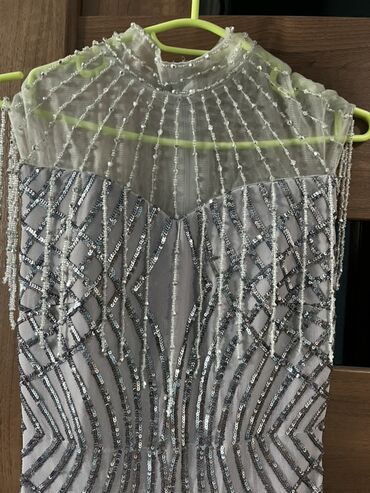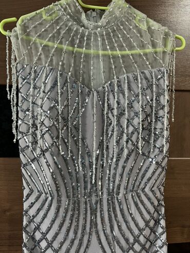 Gümüşü-boz rəng palitrasında, tam boy ziyafət/libas.
