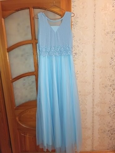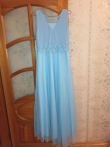 - Model: Ətək hissəsi tül qatlı, axıcı uzunluqda; üst hissə qolsuz.
