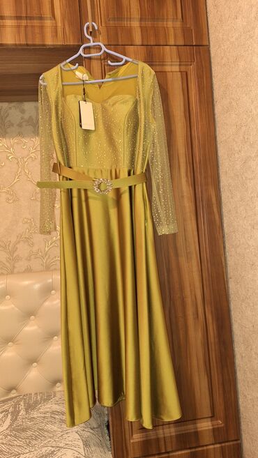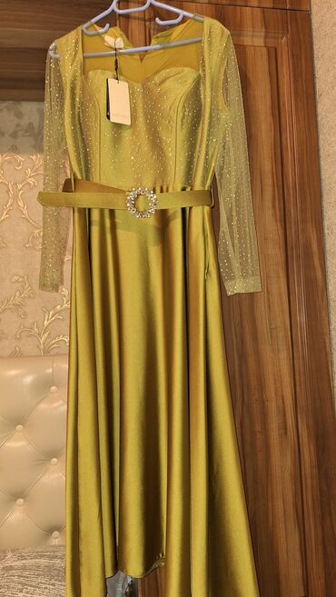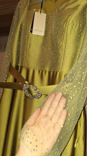 Model: 44 ölçü (etiket üzərində) ziyafət/gecə geyimi,yenidir,geyinilmeyib,astarlidir,atlatlasi qalindir qirismayan materialdadir,44 olcu olsada 42 beden xanimlara uygun olacaq,boyu topuga yaxindir.