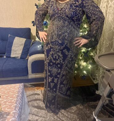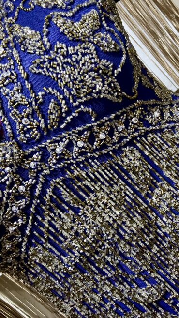 Zərif gecə/libas – tünd royal mavi rəngdə, tam bədən boyu.