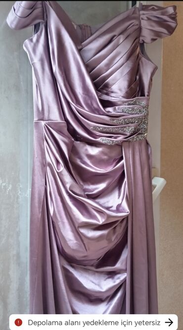 Bənövşəyi rəngdə uzun ziyafət geyimi X lady 350 azn alınıb 1 defe geyinilib - Model: A-kəsimli, yerə qədər uzun ətəkli - Parça: Parıltılı, axıcı satena bənzər material - Üst hissə: Drapeli büst, ü...