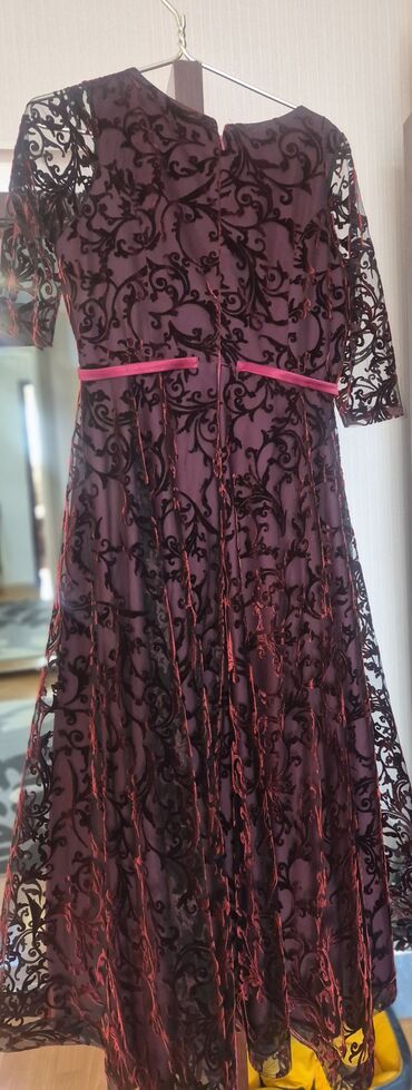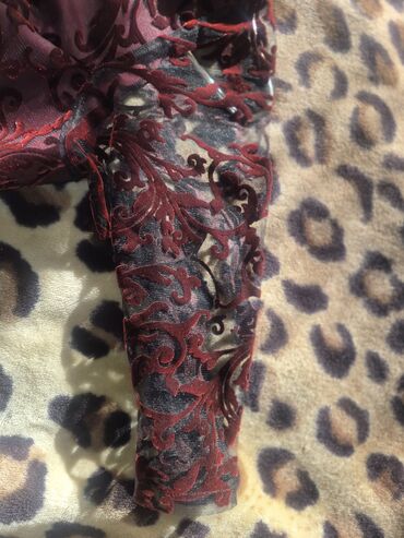 - Material: yarımşəffaf tül üzərində kabartma məxmər naxış; içlik/parça astarlı