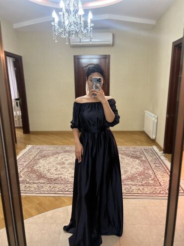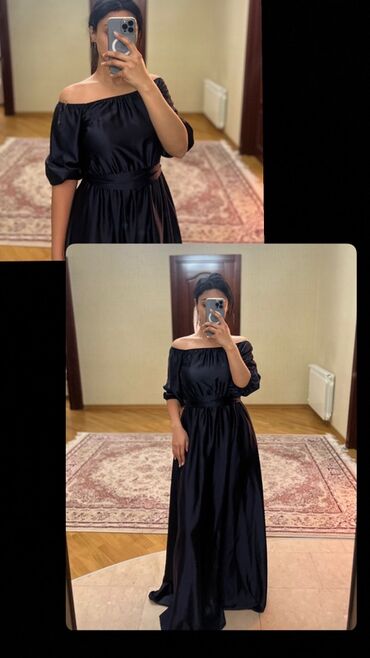 Qadın ziyafət/gecə geyimi – satən parıltılı uzun don