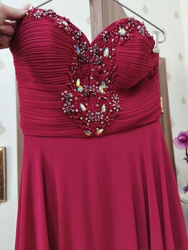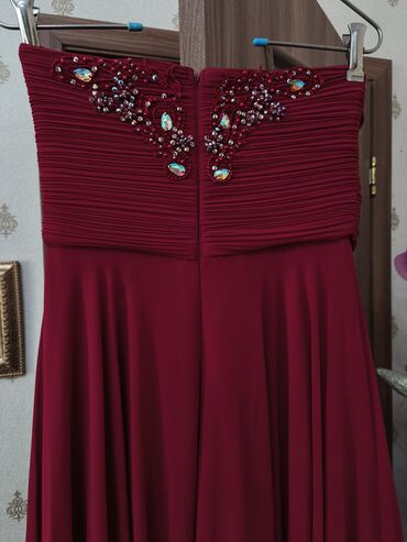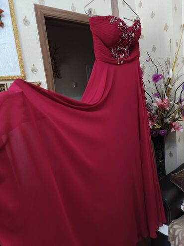 Qırmızı/bordo rəngli gecə/libas - Model: uzun, A-kəsim ətəkli