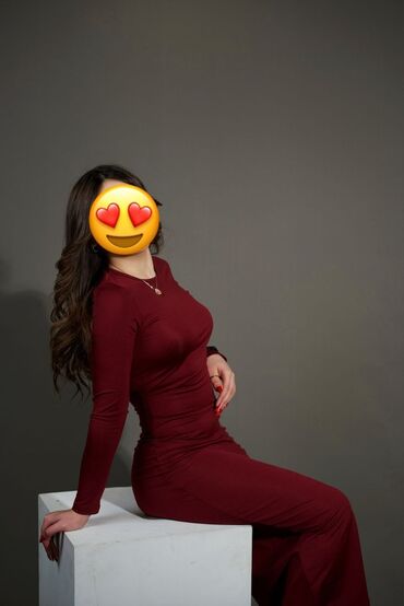 Bordo rəngli qadın geyimi – uzun, bədənə oturan təmtəraqlı don