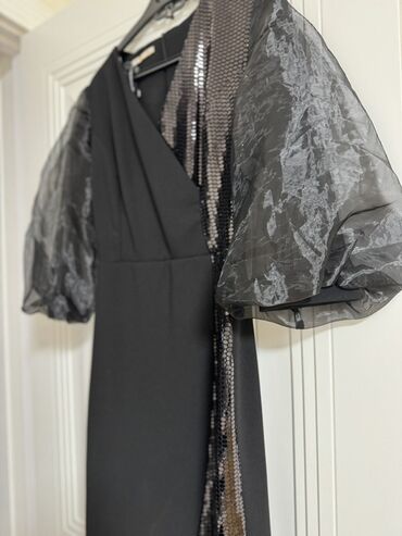 Zərif payetlər və şəffaf qollar sayəsində həm klassik, həm də modern görünüş verir; bədəni incə göstərən kəsimlə rahat oturuş təmin edir.