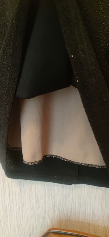 - Material: qırışmayan elastik parça, xırda parlaq işləmələr ilə süslənib. Parça xüsusiyyətləri: yumşaq, bədənə oturan, rahat hərəkət imkanı verən elastiklik, iç hissəsində astarı da vardir.