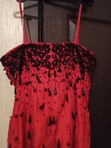Qırmızı rəngdə zərif gecə/libas dəsti.