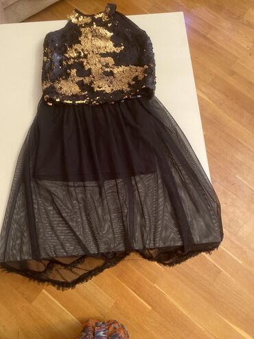 - Rəng: Qara baza üzərində qızılı payetlər, qara tül ətək.