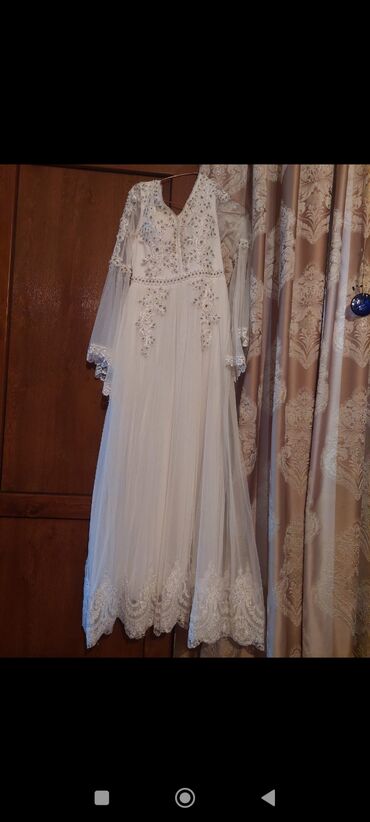 4) Ağ, uzun, krujeva və tüllə işlənmiş paltar: