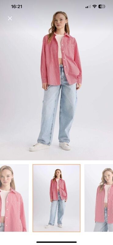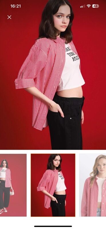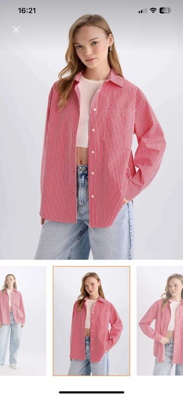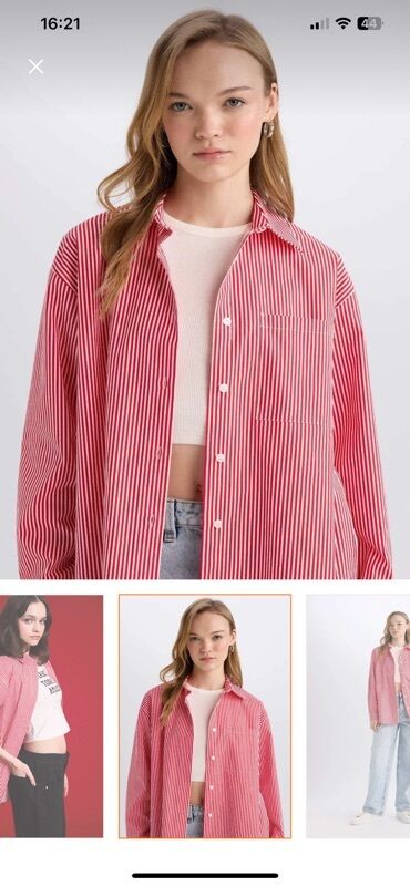 De facto yeni koynek. Qırmızı-ağ zolaqlı oversize köynək