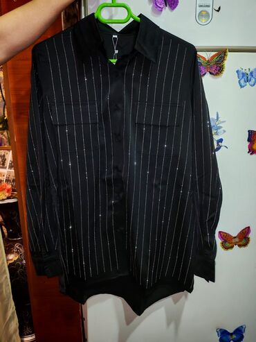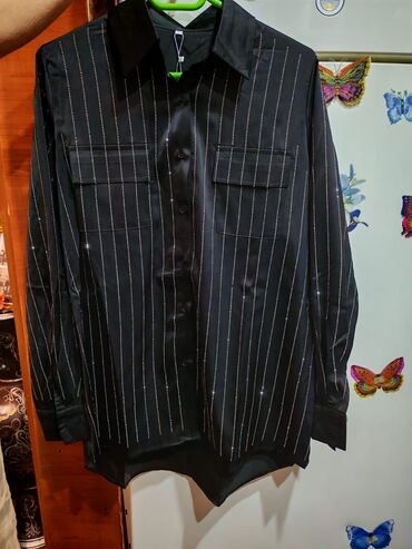 - Üst: uzunqol, düyməli köynək; klassik yaxalıq; ön hissədə iki qapaqlı cib; parıldayan incə şaquli zolaqlar; arxa hissə düz, ətək xətti yüngülcə uzadılmış.
