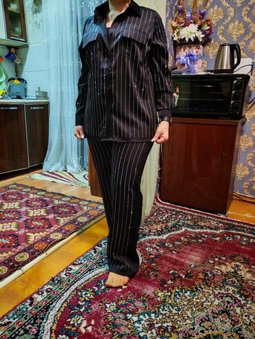 - Şalvar: düz kəsim, rahat oturuş; eyni parıldayan şaquli zolaqlı naxış.