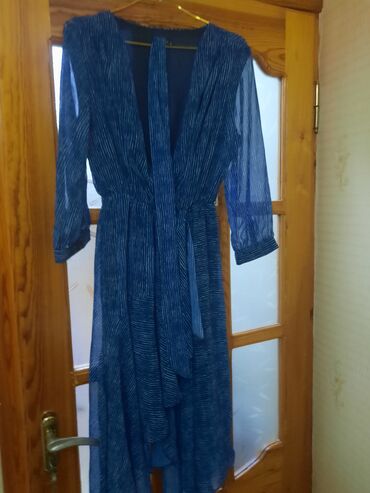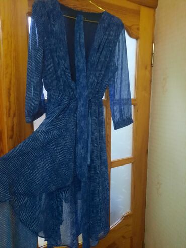 Mavi rəngli, zərif şifondan hazırlanmış zolaqlı don.