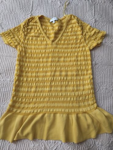 Model: Zolaqlı toxumalı sarı trikotaj tunika/mini don