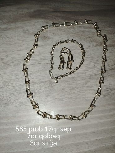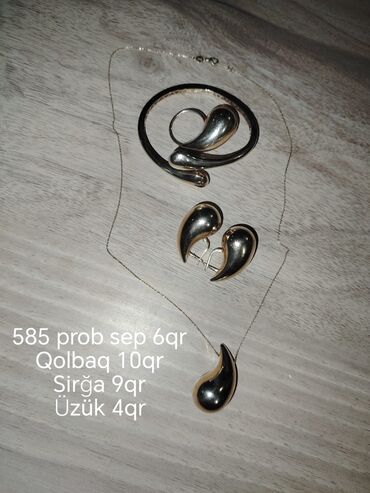 Dəstə daxildir: Üzük, Sırğa, Bilərzik, Sarı qızıl, 585 Əyar, 7 g