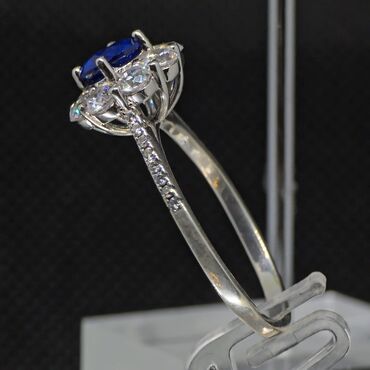 - Mərkəzi daş: dərin kobalt-mavi, fasetli yuvarlaq kəsim. Həm üzükdə, həm də sırğalarda mərkəzdə yerləşdirilib.