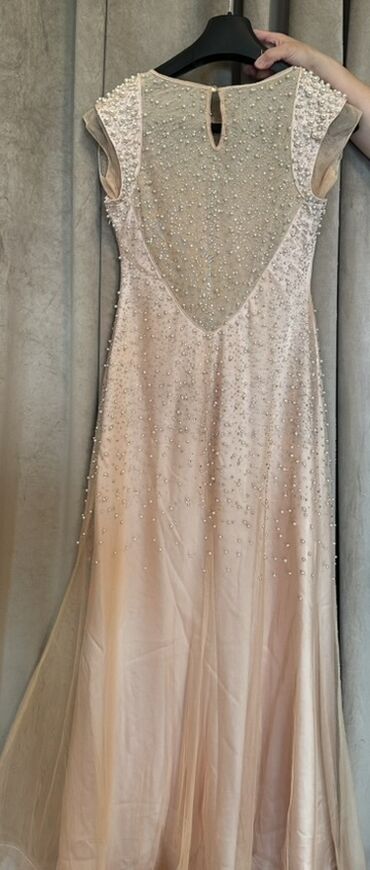 Detallar: Parlayan kristal daşlar və mirvari effektli muncuqlar işıqda gözəl parıltı yaradır, tül qat sayəsində yüngüllük və romantik görünüş təmin edir. Arxa V-kəsimi geyimə incə və zərif vurğu qatır.