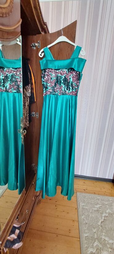 Zümrüd-yaşıl rəngdə uzun ziyafət/libas.
