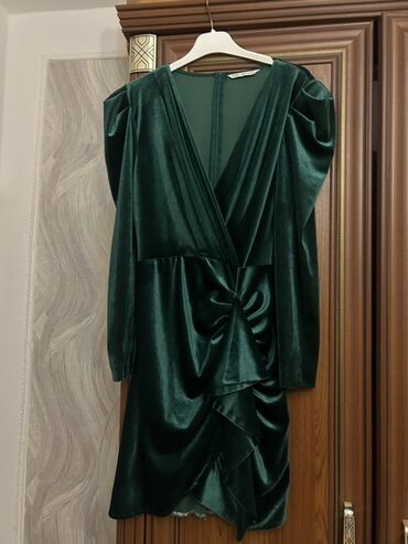Zümrüd-yaşıl məxmər qısa don