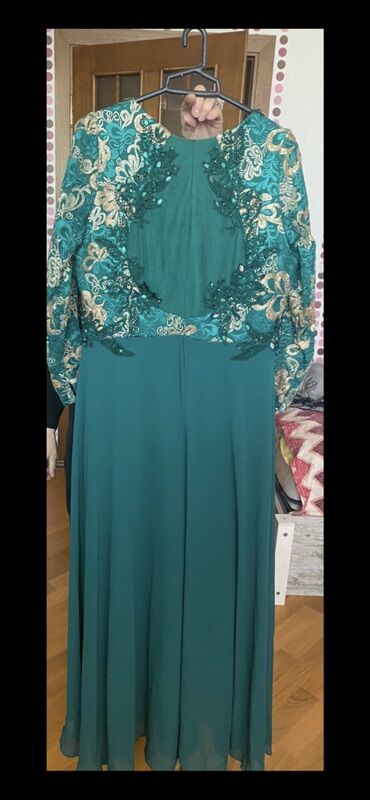 Toy üçün 150aznə alınıb 1defe geyinilib Material: Parça Stil: Ziyafət Rəng: Zümrüd Yaşılı Uzunluq: Uzun Qol Tipi: Qısa Qanad Qol Yaxa Kəsimi: Yuvarlaq Yaxa Bəzək: Krujeva, Daş İşləmələri Siluet: A...
