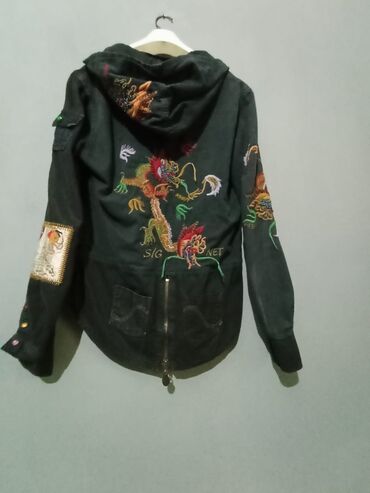 40-42Qara rəngli kapüşonlu jaket – çoxcibli, naxışlı model