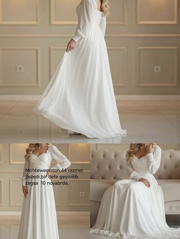 115 alinib 45 satilir Ağ rəngli zərif ziyafət/libas - Uzun, yerdən