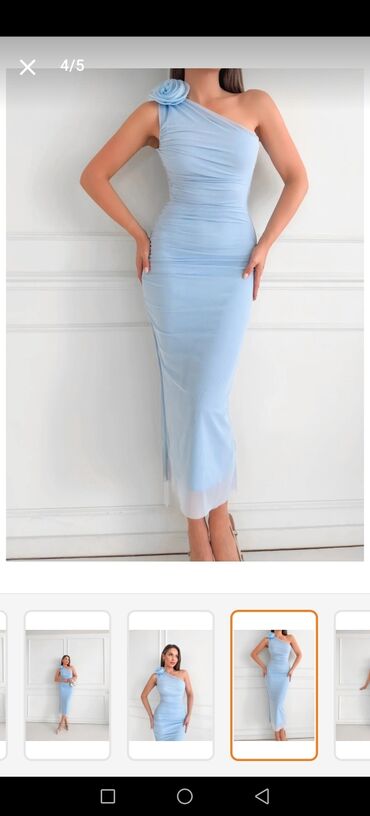 - Dizayn: Çiyində iri güllü applikasiya; bədənə oturan siluet; yanlardan xırda büzgülər