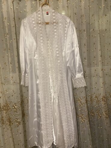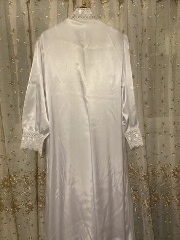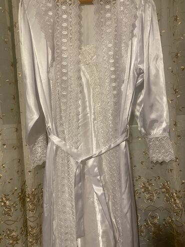 - Komplekt: atlas xalat (bel kəməri ilə) və uyğun gecə kombinezonu