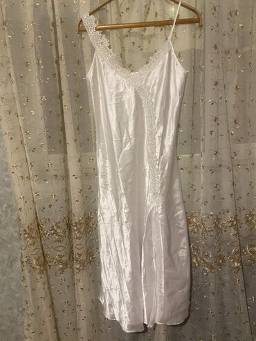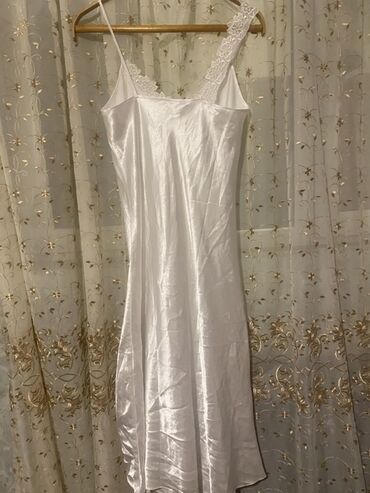 Ağ atlasdan, krujeva detallarla bəzədilmiş zərif gecə dəsti